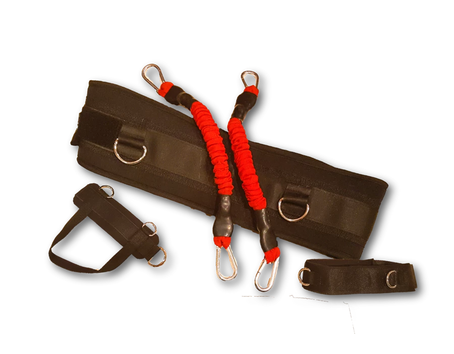 - Comes with waist belt, one foot strap, and two specialized resistance bungees